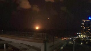 Footage carried by Israeli TV appeared to show some missiles flying over the Tel Aviv area shortly before 19:45 local time (16:45 GMT).