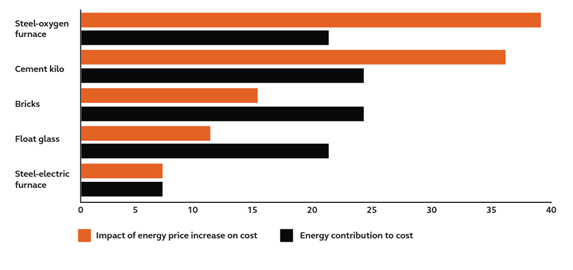 Figure 1: Contribution of energy costs to construction materials prices and impact of recent energy price